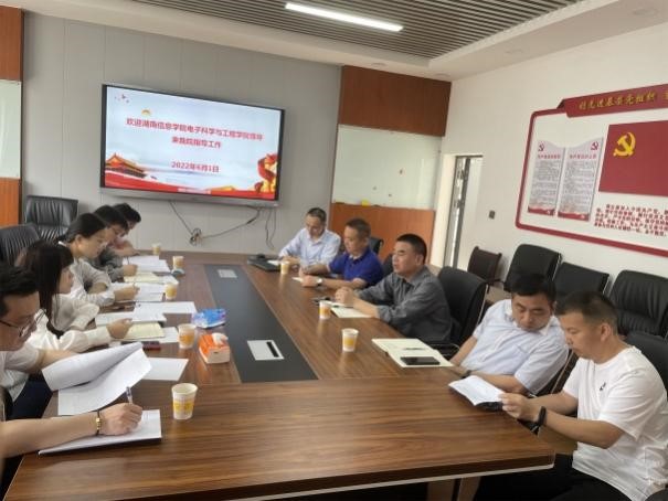 王副经理首先介绍公司通信工程系的发展历史、办学定位、生源情况、团队力量、公司产品成果、科研方向和科研成果,以及实验室建设等情况。房晓丽介绍了湖南信息公司通信工程专业的办学历史和相关情况。双方就通信专业课程的学分设置、课程设计的过程组织和考核形式、专业建设的成果评价体系、校企合作、毕业论文选题、毕业实习的过程组织、课程体系建设、计算机视觉导航科研进展等方面问题进行了广泛交流。