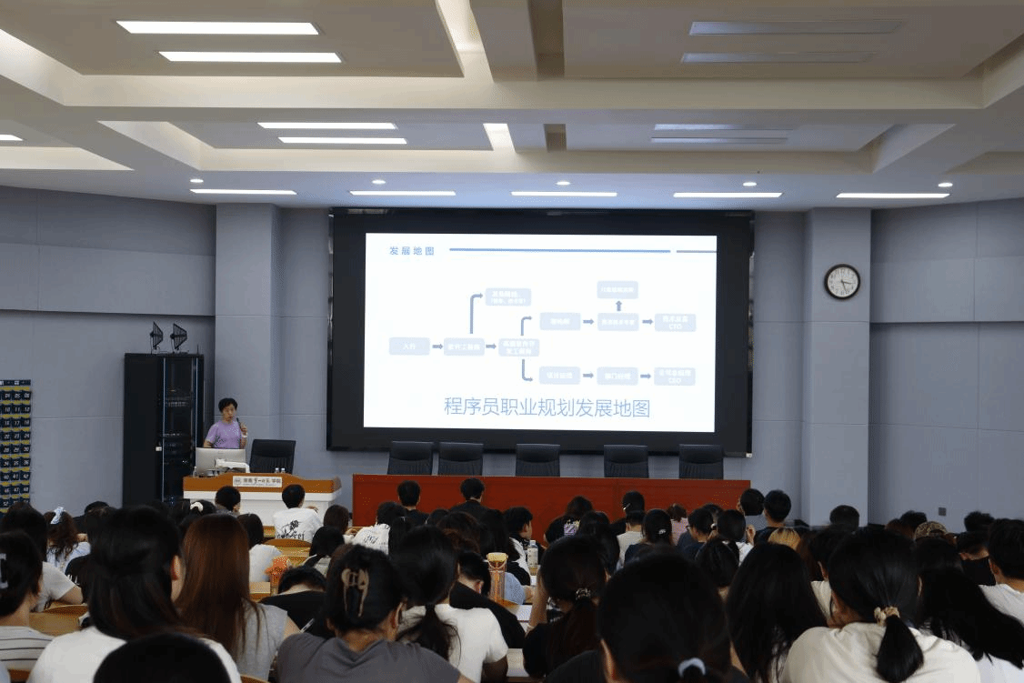 在讲座中,湖南盈高科技有限公司的廖经理和周经理分享了求职经验与建议,鼓励同学们积极考取与专业紧密相关、得到企业认可的证书,以提升个人竞争力。