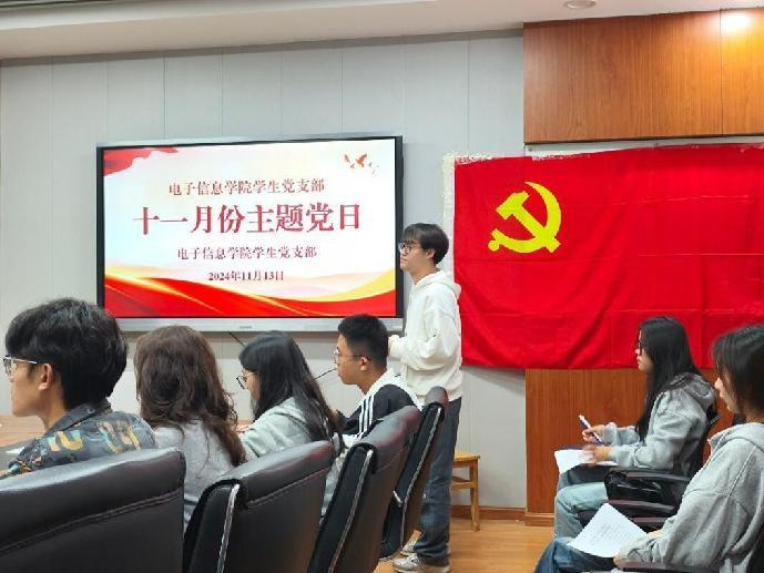 多名党员现场分享学习心得。宋喆提出,作为党员应深入学习新时代新思想,提高自身责任感与使命感,谱写时代新篇章。李荣铨提出,党员应当深入群众,了解人民群众的生活需求,并以视频中习近平总书记深入基层为例,强调了密切联系群众的重要性。王子怡提出,自在党的十八大以来,乡村振兴战略取得了显著成效,作为新时代新工科青年,我们应深刻领会这一思想,筑牢理想之基,强化使命担当,以实际行动推动乡村全面振兴、建设科技强国,为党和国家事业发展贡献力量。