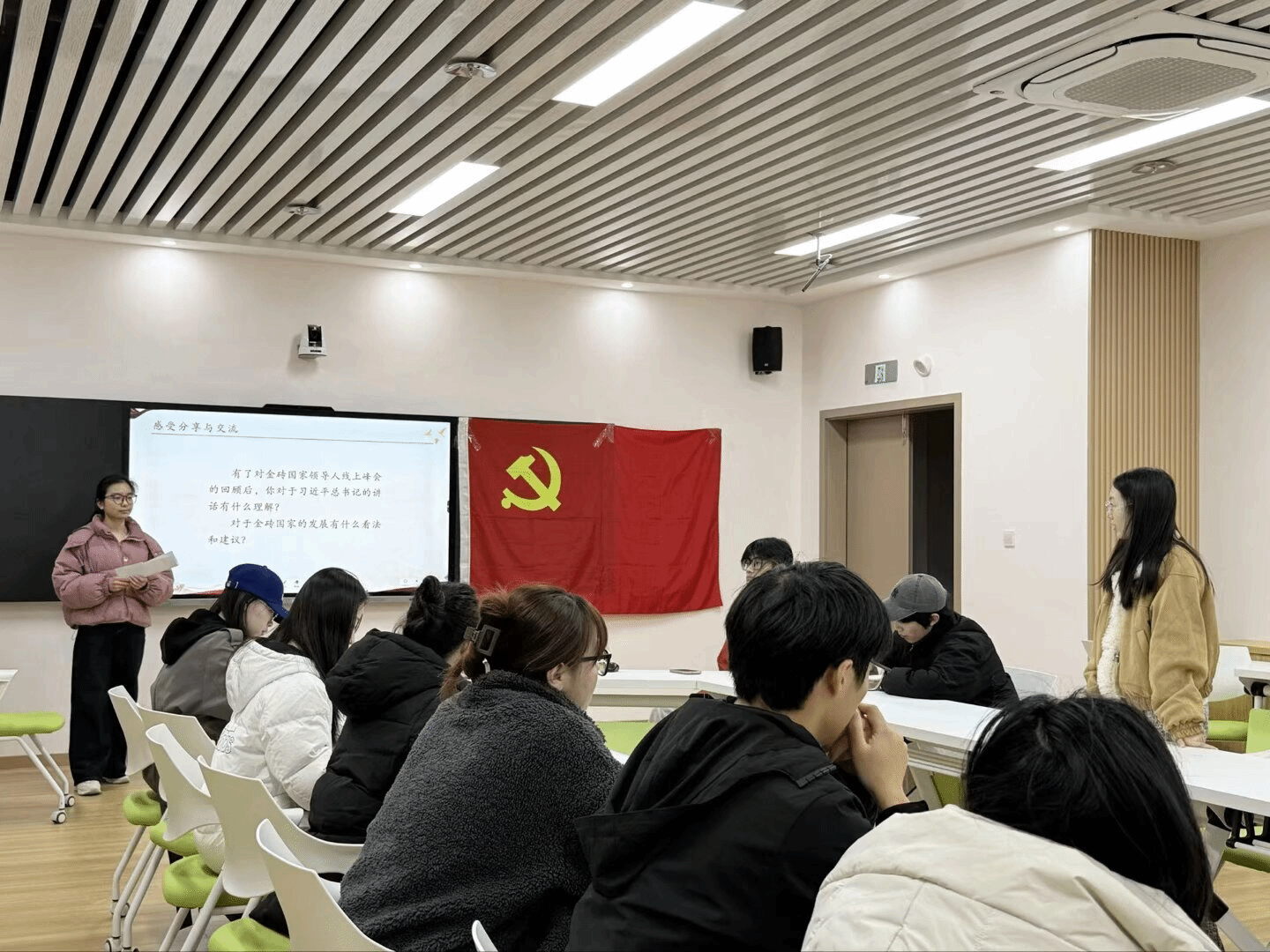 康璐同学提出:我们应秉持团结协作、互助共赢的理念,携手推进人类命运共同体建设。王子怡同学表示,作为员工党员,要强化时政意识、主动关注国际国内的重大时事动态。