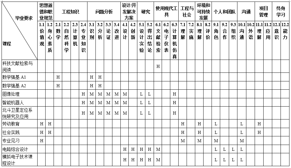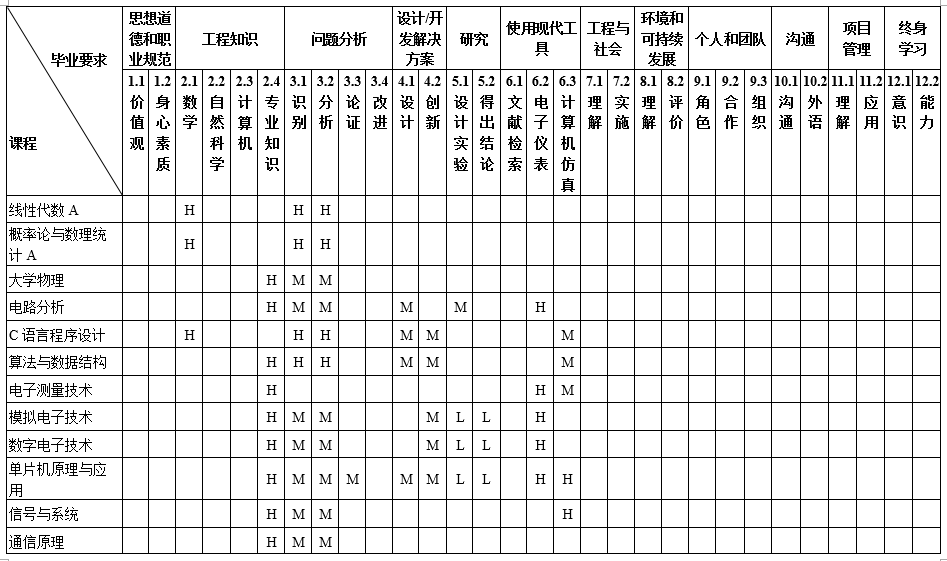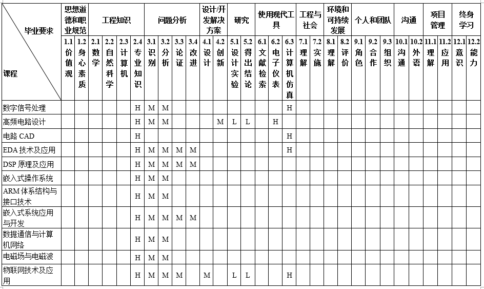 毕业要求对培养目标支撑的矩阵图