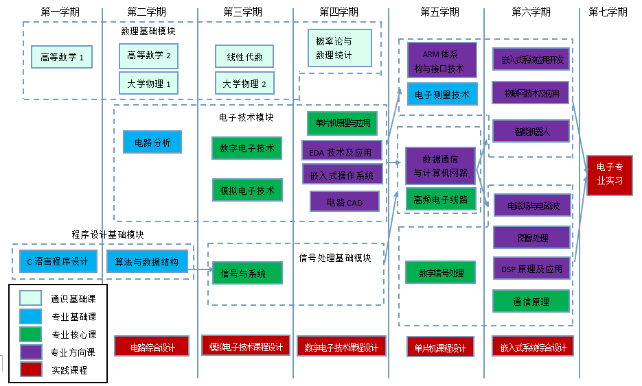 模拟电子技术、数字电子技术、单片机原理与应用、信号与系统、通信原理、数字信号处理、高频电子线路