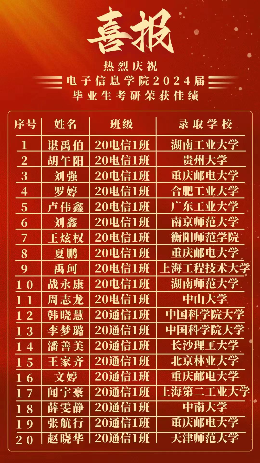 热烈庆祝2024届毕业生考研荣获佳绩