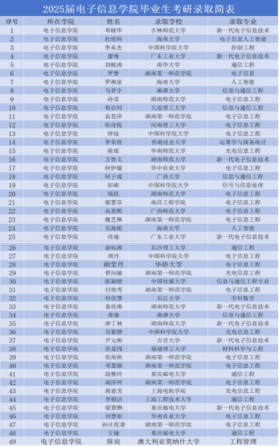 公司2025届毕业生考研升学工作取得历史性突破,实现了考研升学人数以及升学质量上显著提升,充分彰显了公司人才培养工作的高质量产出。公司2025届本科毕业生共计179人,报考硕士研究生人数达107人,报考率为59.7%,充分展现了员工群体积极向上、追求卓越的求学热情。共有49名学子成功被国内外知名高校录取,录取率达27.3%,创公司历史新高,更有5名员工考入中国科公司大学。录取院校涵盖大连理工大学、中国科公司大学、中国传媒大学、湖南师范大学、香港浸会大学、澳大利亚莫拉什大学等多所重点学府。