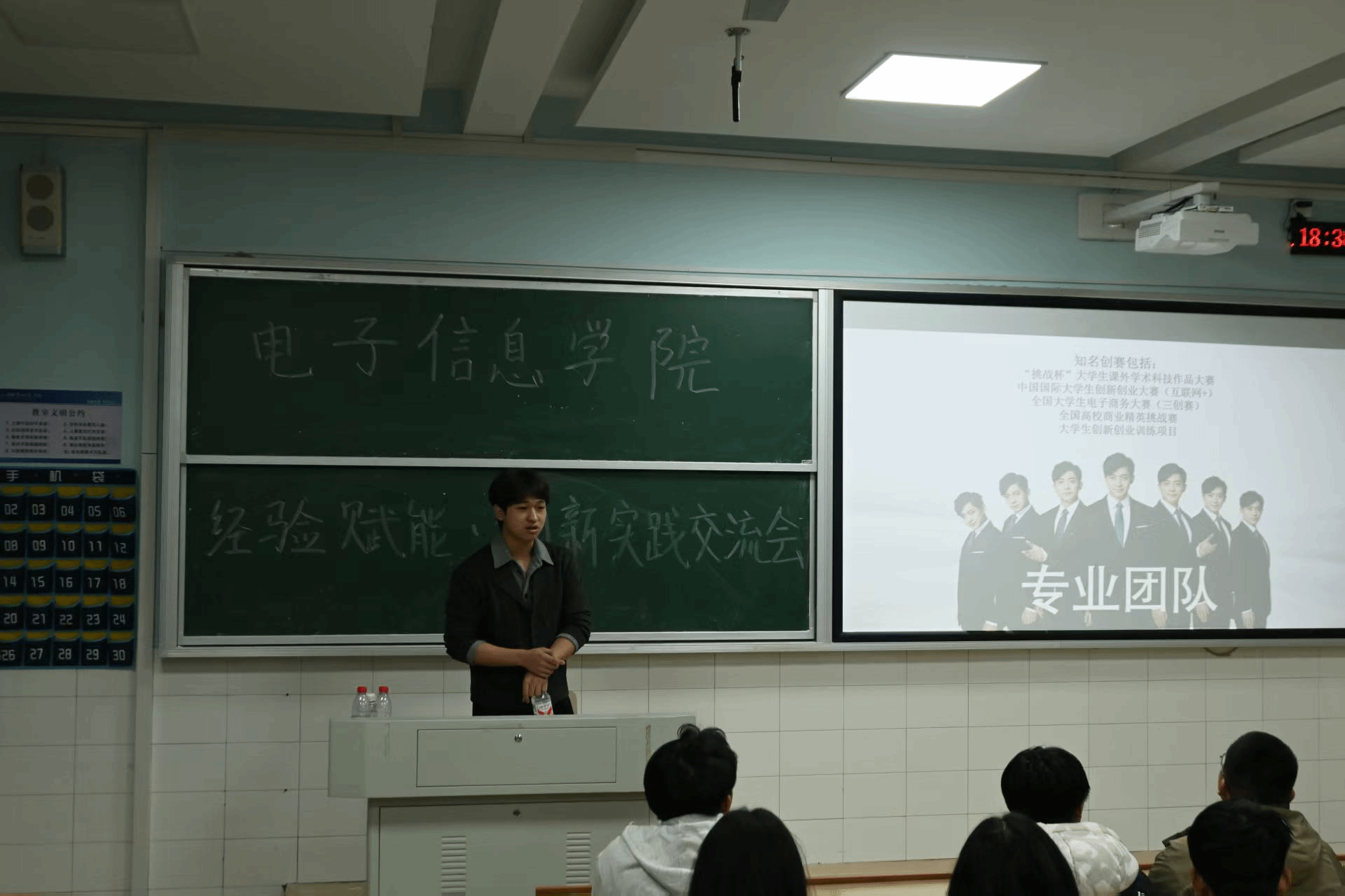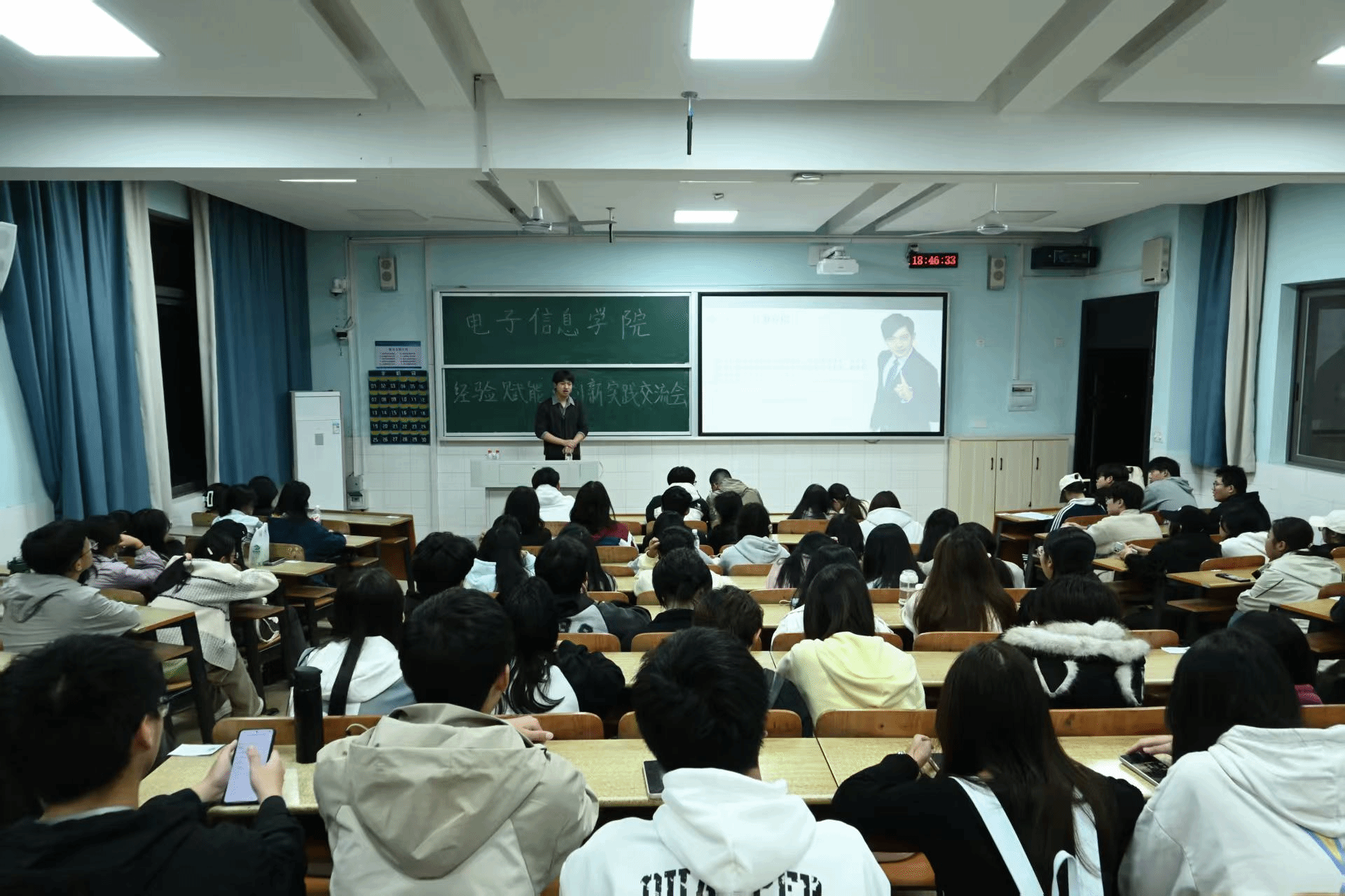 胡哲源结合自身经验,为同学们介绍了各创新类赛事特点,并鼓励大家积极参赛。同学们也围绕选题、协作与时间管理等方面踊跃提问,胡哲源逐一解答,这有效加深了大家对赛事的理解。