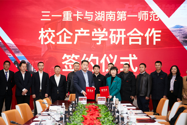 董事长童小娇、副董事长周发明、相关职能部门负责人,三一集团副总裁、重卡事业部总经理张红松、三一集团副总经理、重卡事业部研究院经理朱宏、三一集团总裁助理、重卡事业部人力资源本部本监张大明出席签约仪式。