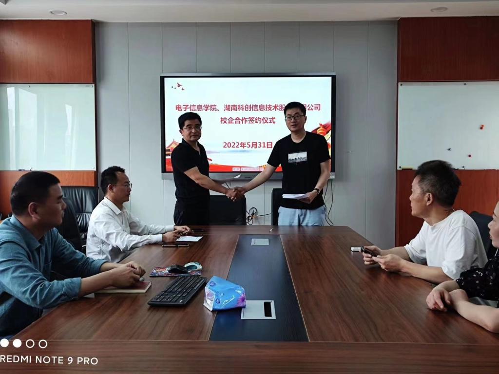 为进一步贯彻落实公司“新时代、新师范、新使命”办学新理念、服务“强师计划”和“强省会战略”,2022年5月31日上午11:00,在公司玉衡北302会议室,伟德国际1946bv官网与湖南科创信息技术股份有限公司签订校企合作协议。双方在人才培养、技术研发、实习实训、员工就业等达成广泛合作意向,这是电信院落实公司办学新理念,服务区域经济发展的实际行动。公司将进一步加强开展校企合作,深化人才培养、团队建设、科学研究新模式新路径,努力开创新工科建设大好局面。