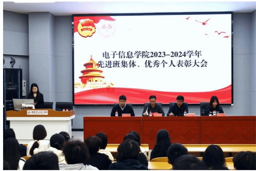 大会宣读了2023-2024学年表彰决定,授予明耀燕等69名同学“校级三好员工”称号,顾佳媛等58名同学“校级优秀员工干部”称号,2022级通信工程专业1班等3个班级“校级先进班集体”称号,表彰了29名院级三好员工、29名院级优秀员工干部和3个院级先进班集体;同时,大会还宣读了2024-2025学年第一学期先进个人名单,表彰了41名优秀员工干部和196名优秀班委。